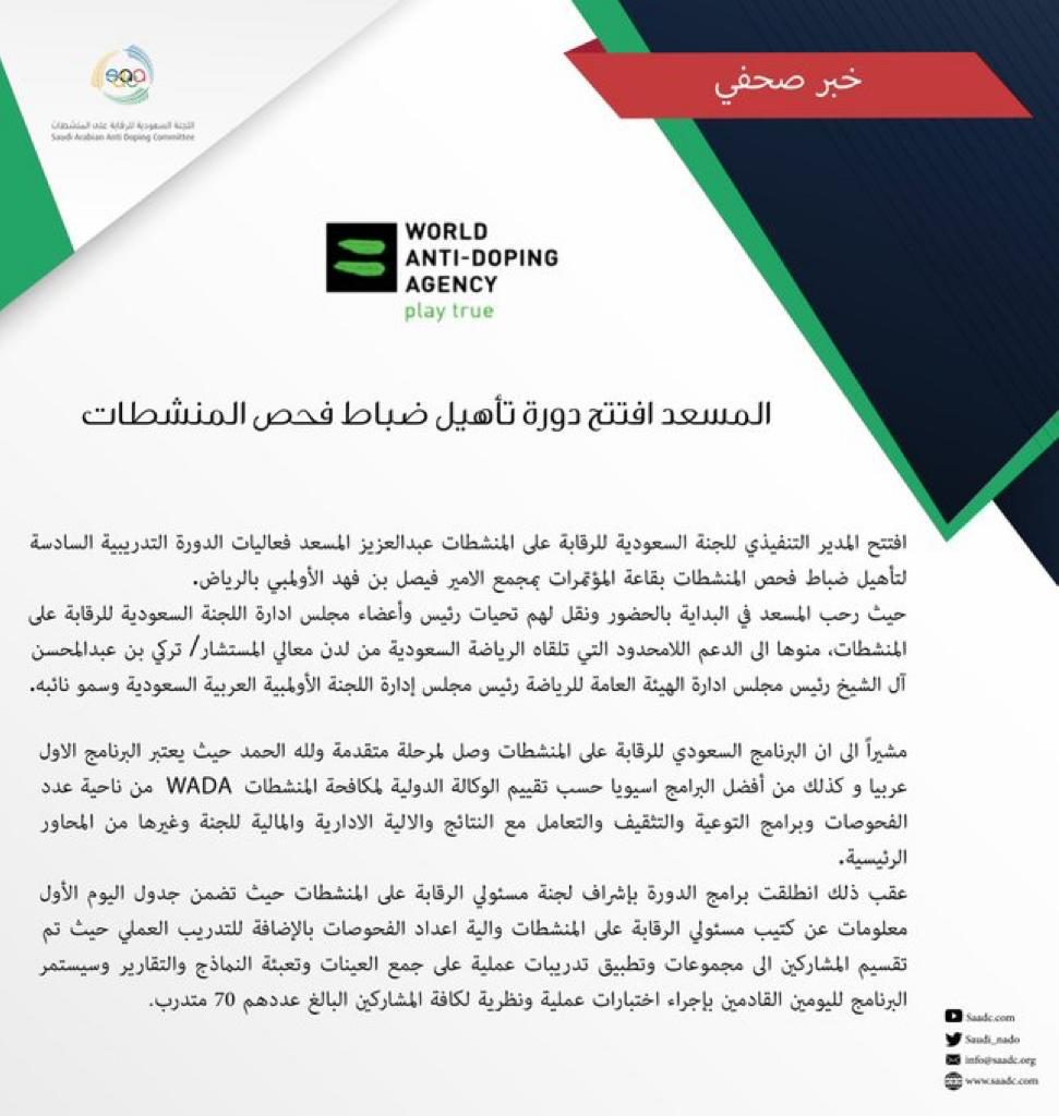 المسعد افتتح دورة تأهيل ضباط فحص المنشطات